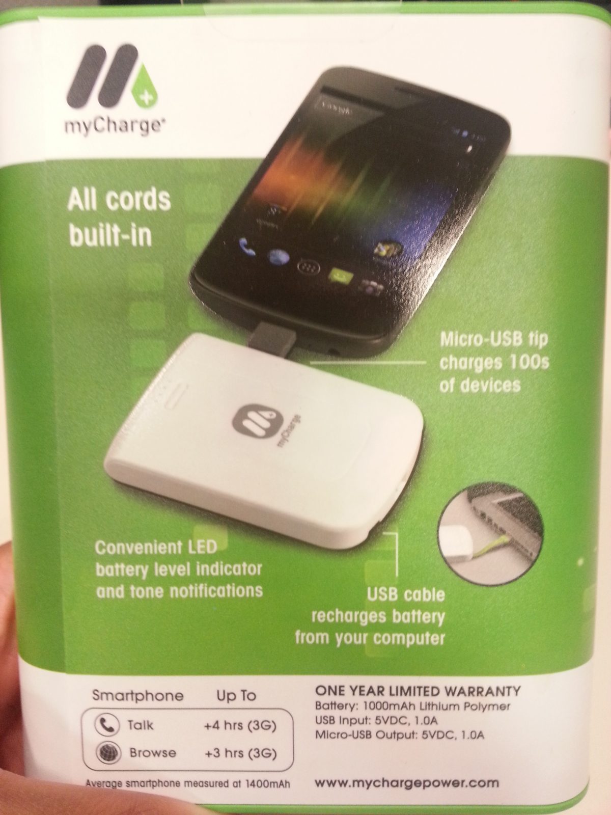mycharge Voyage 1000 – Back Packaging