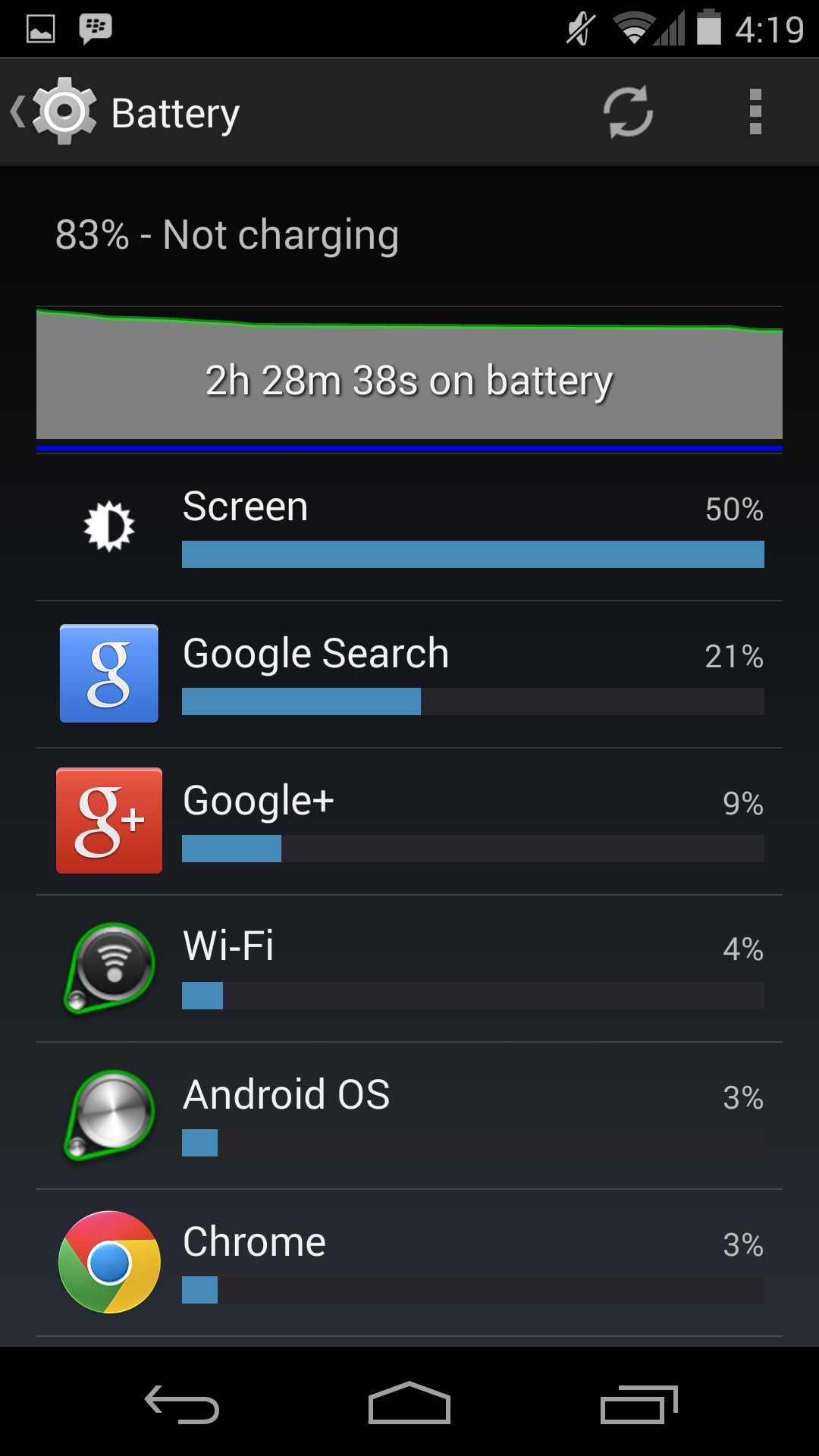 The Nexus 5 has a 2,300 mAh battery. Depending on your use that can go really bad or really good. I tried a couple of days of heavy use and another couple of light use. I went from 6.5 hours of battery life to 12.5 hours of battery life. The battery life on the Nexus 5 is pretty decent. I won’t be leaving my battery packs at home though.