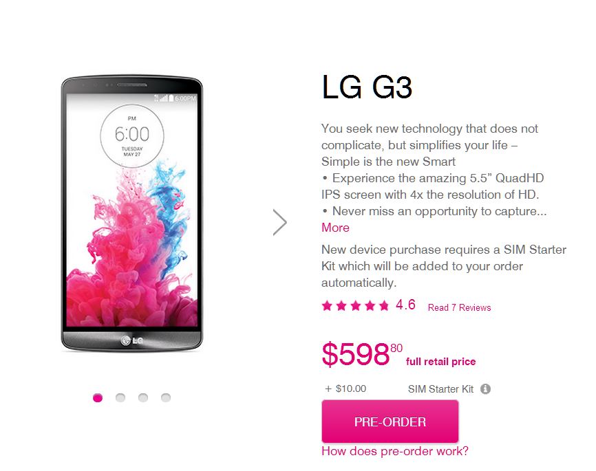 It seems that T-Mobile will be the first to carry the LG G3 smartphone. It’s just been announced that you can pre-order the LG G3 starting today. It will be in stores on July 16th. No information on other carriers yet. T-Mobile had a sweepstakes for where some lucky winners were able to get the LG G3 before its official release. Pricing starts at $598. Learn more about the phone and T-Mobile’s network with specs below.