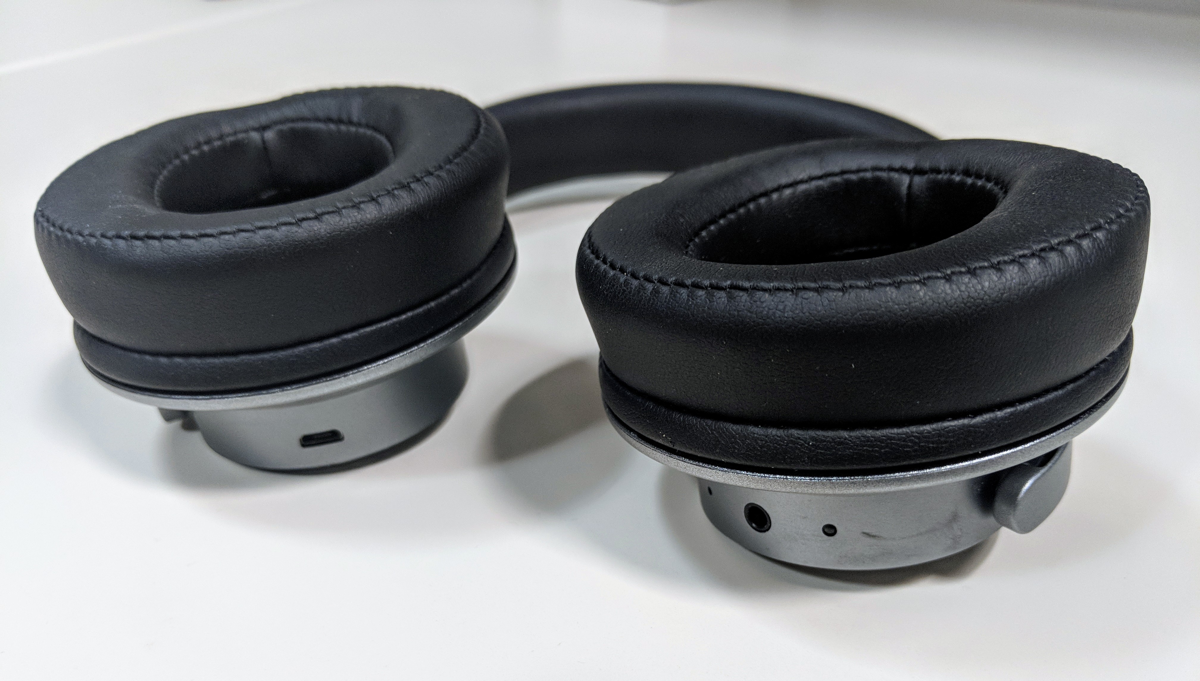 You’ll find most of the controls on the right ear cup. You have the power button, volume, playback controls on the outside of the right ear-cup. They are labeled in white markings. I do wish the labels were a bit smaller or done in a greyish tone to make it even sleeker. The left ear-cup houses the micro-USB charging port The noise-canceling button.