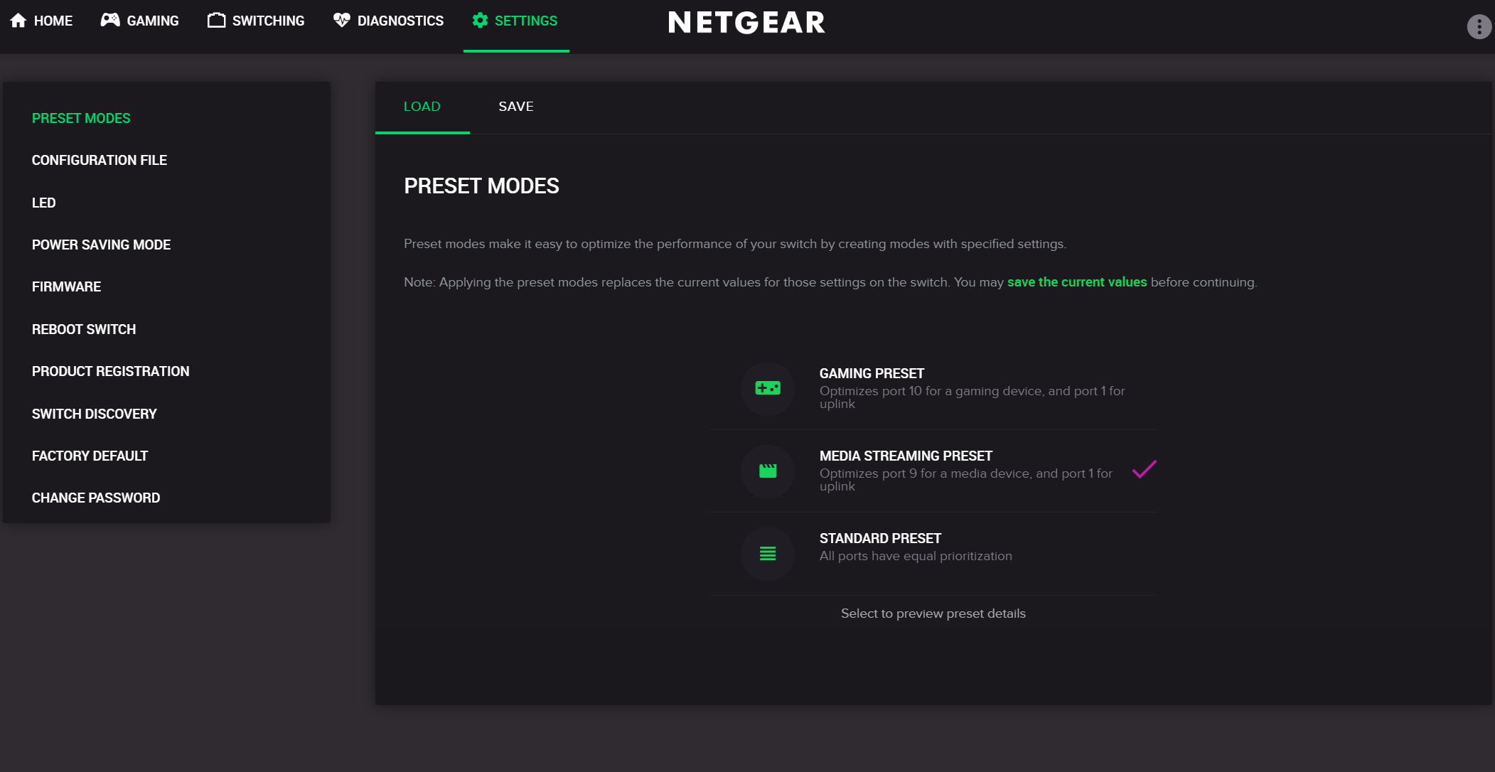 Negear Nighthawk Pro Gaming SX10 Switch – Preset Modes