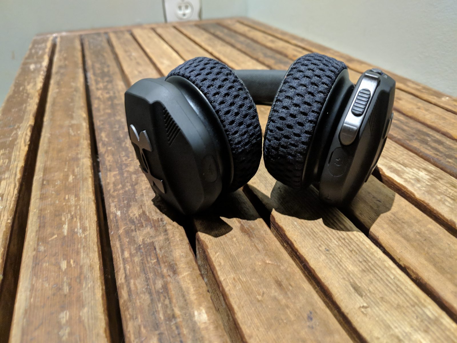 You’ll find the controls on the right. Your power/pair button. On the bottom front of the speaker, you have three button control. The volume rocker surrounds the play/pause button. That same button can be used to pick up and hang up calls. You’ll also find the multifunction TalkThru button on the right ear cup as well. The UA logo serves as a mute button. With TalkThru, when you put to press the button, it lowers your music and turns on the mics to allow you to hear your surroundings. The left side has the charging port. These headphones charge via micro-USB. The overall matte finish, make these headphones look cool but not flashy.