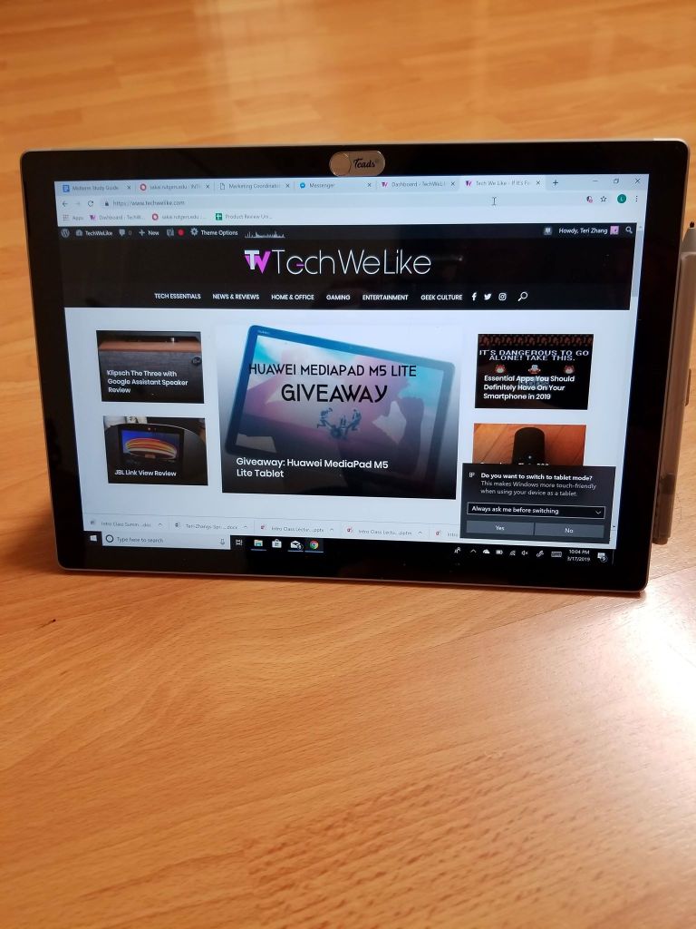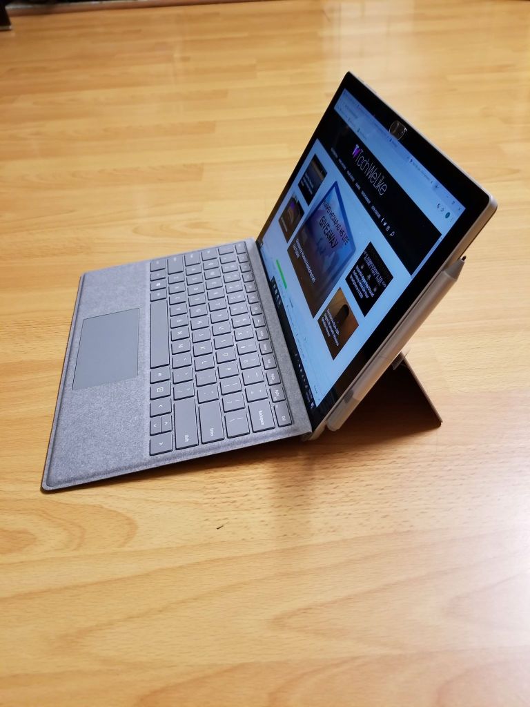 pro is because I commute to school from work, and sometimes I have to carry 2 laptops. The total weight of the surface pro with the type cover is around 2.4lbs, making it easy to transport. - Laptop to tablet mode: I love that I’m able to utilize the surface as a laptop and a tablet. On the one hand, I can attach the keyboard and utilize it like any other laptop. On the other, I could detach the keyboard completely and utilize it as a tablet.