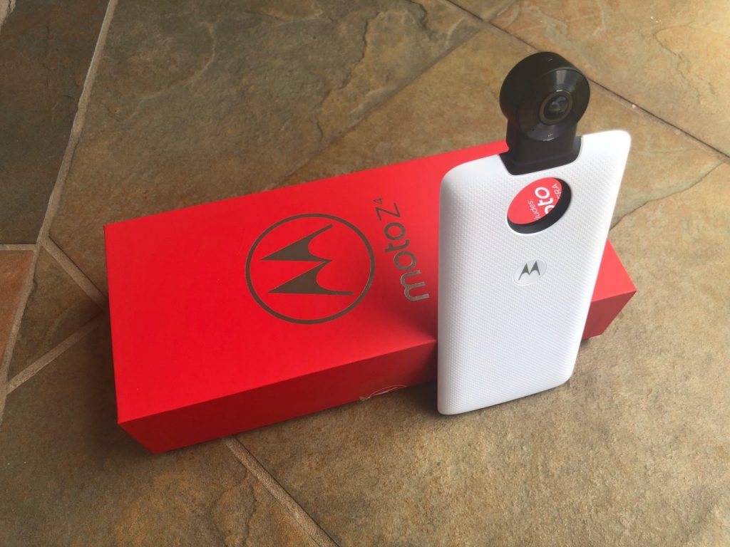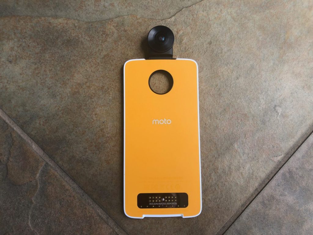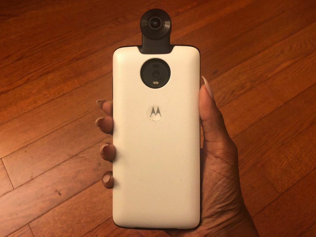 This was my first foray into Moto Mods and I loved the ease of use. As noted, the review unit came bundled with a moto 360 camera, which easily snapped on and off the phone with a magnetic connection. Upon snapping it together, the Z4 immediately recognized the add on. It’s a foolproof process that requires no further installations. When you open the camera app, you get a 360-degree spherical panorama, sourced by two 13MP sensors. You can process 360-degree view videos in 4k at 24fps, along with 3D audio. There are three viewfinder modes: a simultaneous live image of what the front and back sensors see, stacked on top of each other; a similar view where you see the front sensor in the top frame, but the bottom frame shows a full panoramic view of both the back and front cams; and the globe which is a spherical view of what the camera sees. You can swipe to move the view around and zoom in on the fly. If necessary you can still toggle between the regular Z4 cams and the 360-cam right from the camera menu. That’s all good and well, and the 360 cam mod can have its uses, but unless you’re in optimal conditions (i.e. it’s bright and you’re outdoors) the quality will suffer greatly. There’s no real stabilization to speak of and the moment you are indoors or in a low-light situation–forget about it. The noise and image quality encounters significant degradation for both photos and videos. Some of the more adventurous among us will find a use for the mod as it does have a capable editor to help you seam together wide angle shots. You can even livestream from the 360 camera.