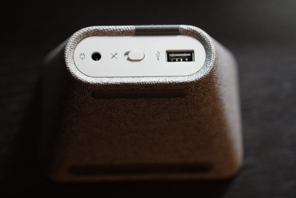 The Lenovo Smart Clock is small. Meant to stay on your nightstand, the Smart Clock has a 4-inch IPS touchscreen display. It doesn’t have a camera, making it a safe smart device for the bedroom. On the fabric top, you have the volume up and down buttons. On the back of the clock, you have a USB port to charge devices, the mic on/off button, and the AC adaptor port. The bottom of the has two rubber grips to help keep the clock in place. That’s it. There are no color options.