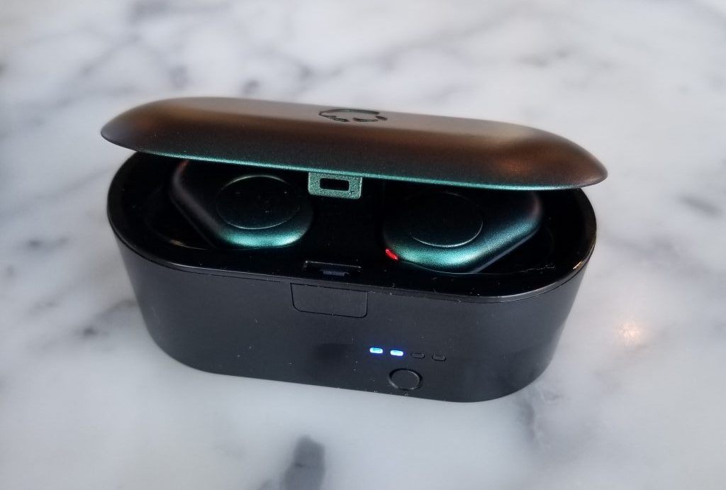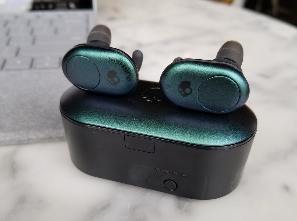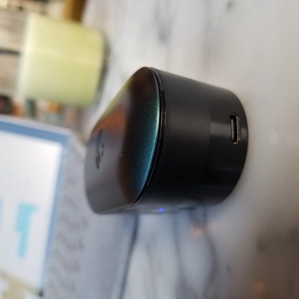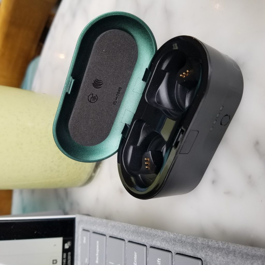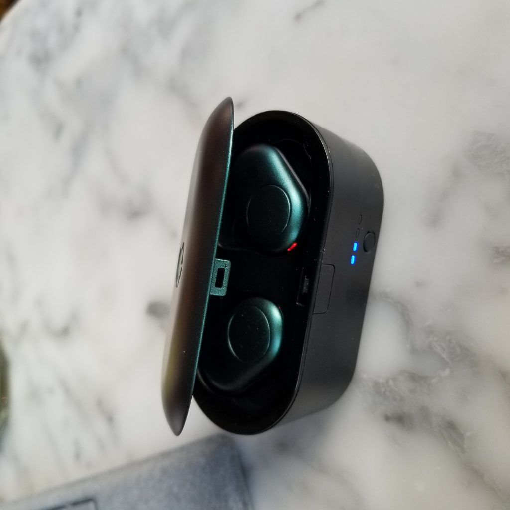 The Skullcandy Push also come in this great case that doubles as their charger. The best part, in my opinion, is the fact that there is an indicator light that tells you how much charge is left for your case. When I used my AirPods, I don’t have an indication other than the red or green light. That being said, there is something to be said for the sleek design of Apple. I found it hard to toss the earbuds into my pocket because of the large shape, however, that is a very standard size for most bluetooth earbuds. Another benefit is, since I use an android, I can use the same charger to charge the case, that I use for my phone, it’s convenient not to have to carry 2 chargers at once.