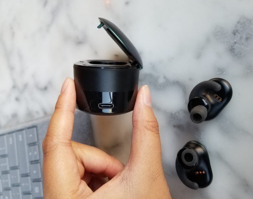 I’ll admit that I was skeptical when I put the earbuds on at first. They felt a bit clunky and heavy, however, when I put them on they didn’t feel as weighty as I expected. They also have this little tip that you can slip into the corner of your ear for a more secure fit, but it didn’t work for me. It did work for my dad, so I think it depends on your ear? It in no way hindered the comfort of the earbuds and they were still secure nonetheless.