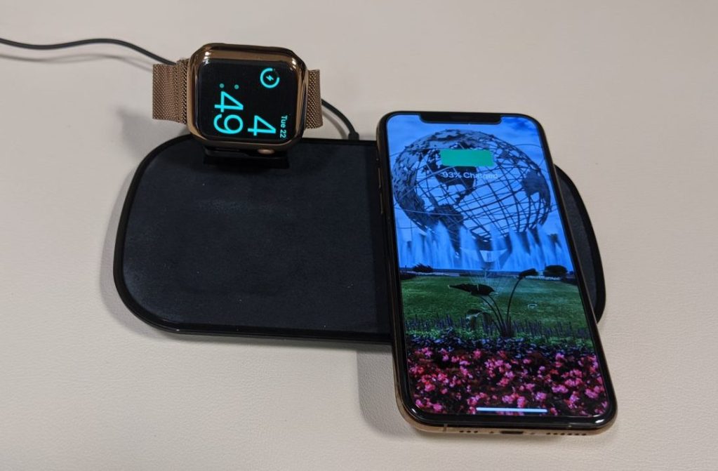You plug the power cable into the back of the mat, plug the power supply in and you start placing your devices. There’s not much to it. I don’t have the AirPods with the wireless charging case, but I do have a pair of Soundcore Liberty 2 Pro Truly Wireless Earbuds that also have a wireless-charging case and it works really well. The Apple Watch charging stand is elevated, allowing you to use nightstand mode, and the screen won’t be blocked by the headphones.