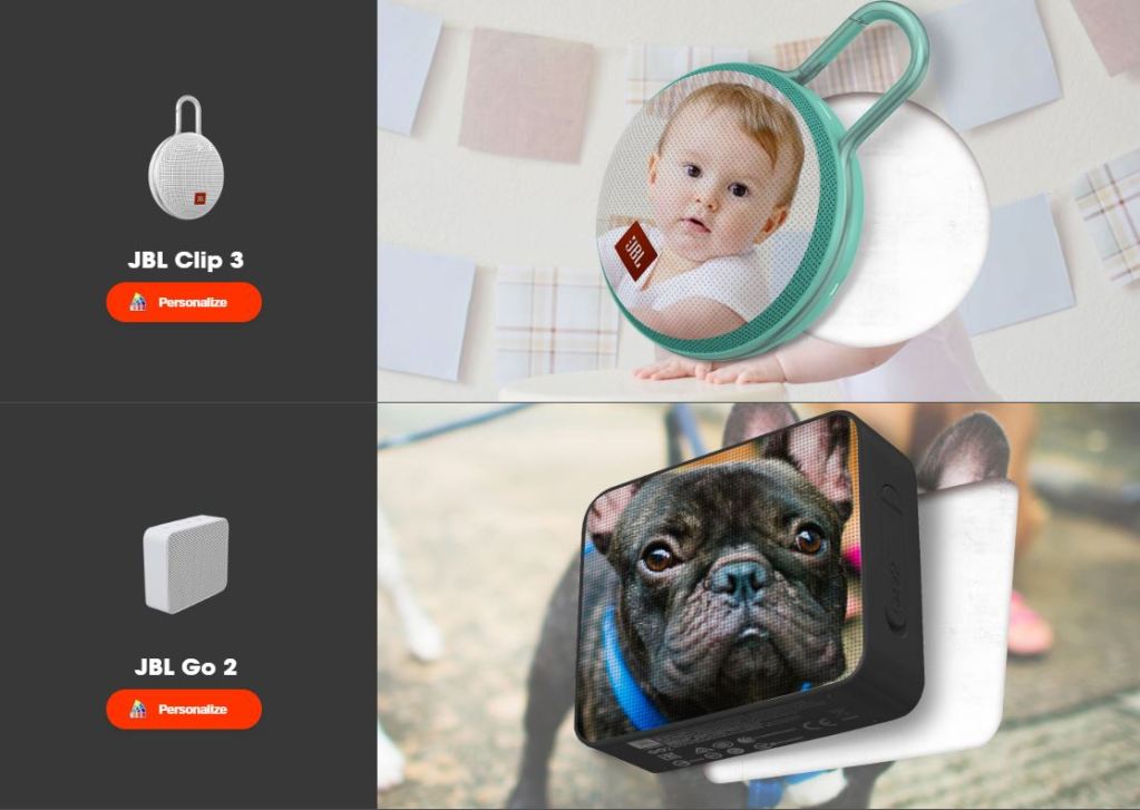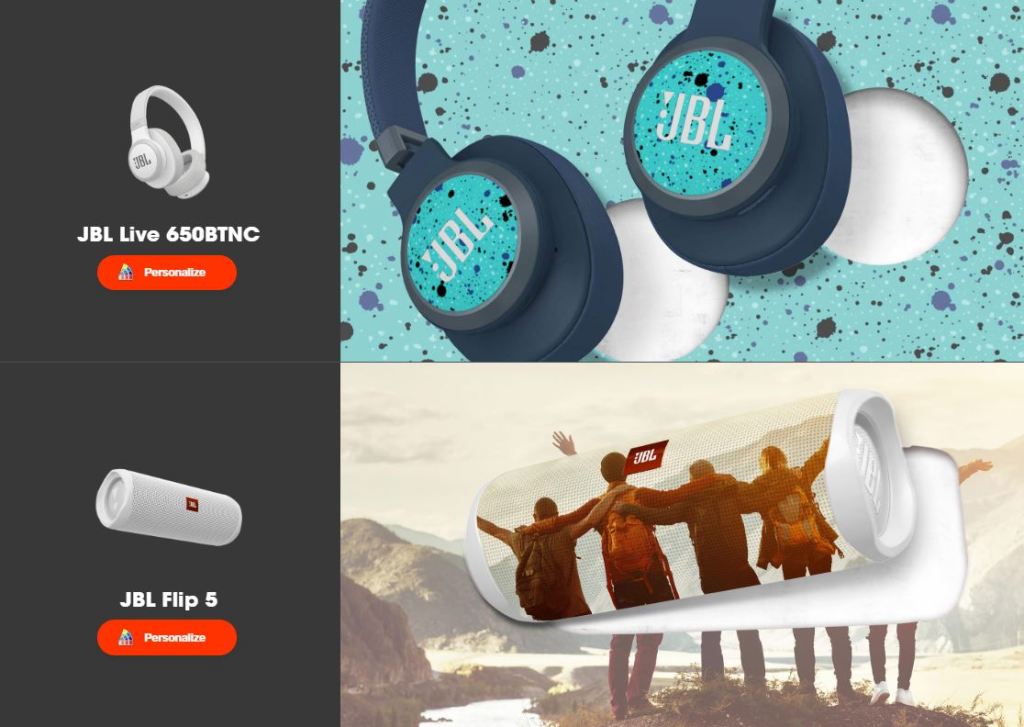 Right now there are six products you can personalize, three wireless speakers, and three wireless headphones. There are many ways to customize your product. You can see the options below.