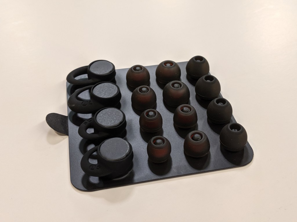 The sound is so impressive. These earbuds are loud! The 11mm drivers do a good job of giving full sound without drowning out bass or getting a flat tune. While they don’t have noise cancellation, they do a very good job of noise isolation. I picked the right size ear tips and wings to make sure the earbuds fit snuggly and comfortably in my ear. There are a lot of ear tips and wings to choose from. It seems there can be a fit for almost everyone, with the right combination.