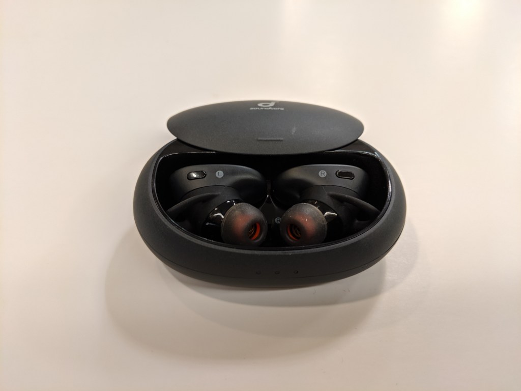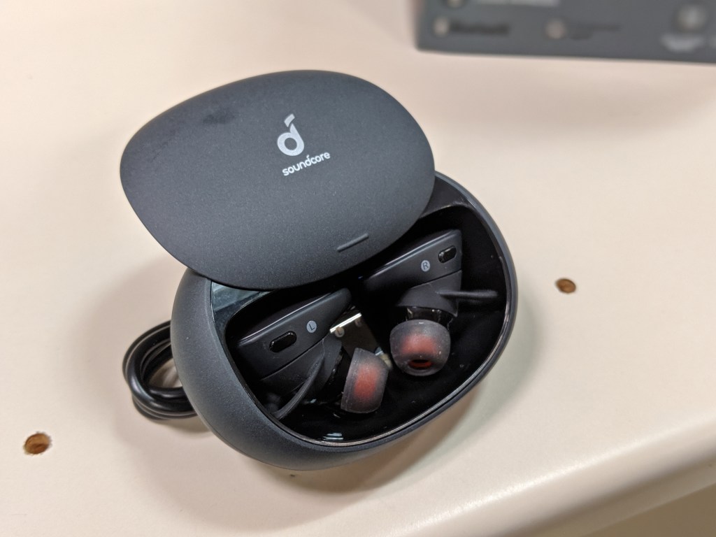 One of my favorite things about the Liberty 2 Pro earbuds is the carrying case. It’s not the most compact case out there, but you can charge it wirelessly. I usually charge them up during the day and they usually last two or three days without a problem. The earbuds will shut off if they’re not paired to a device which helps me a lot because I almost always forget to shut the earbuds off.