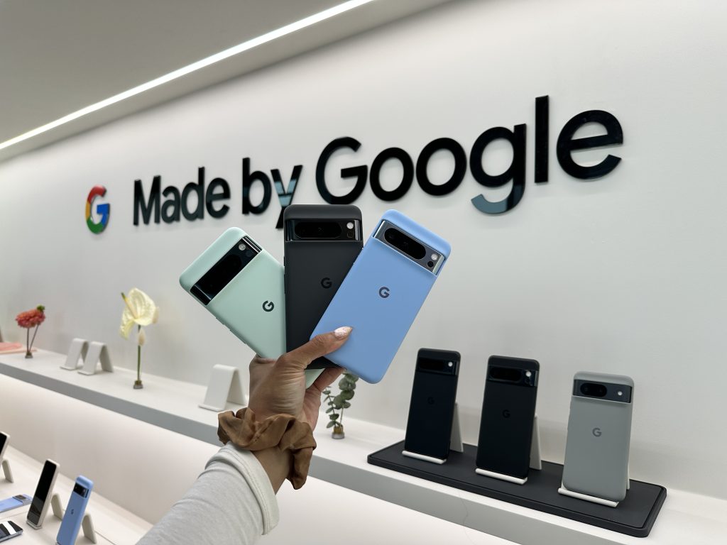 My precious! Pixel cameras are my go-to for still pictures. Actually, it’s everyone’s go-to; whenever I am in a group setting, people want me to take the picture. Who can blame them? Pixel cameras get it right every time, and now they have many more editing features to make pictures near perfect. The Pixel 8 Pro has a horizontal bar in the back that holds the three cameras: a 50MP primary camera, a 48MP ultra-wide camera, and a 48MP telephoto camera. Both models have a 10.5 MP selfie camera, but the 8 Pro has autofocus.