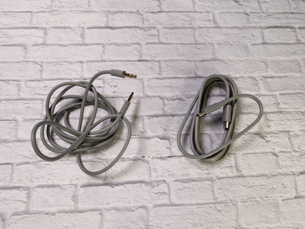 The left earcup has the 3.5-mm headphone jack and the control button “b.” There is also a larger circle around the “b” button that controls the volume. It also has an indicator light, even though the power/pairing button is on the right earcup. The right earcup also has a USB-C charging port. The USBC port can also be used to listen to music with the provided cables.