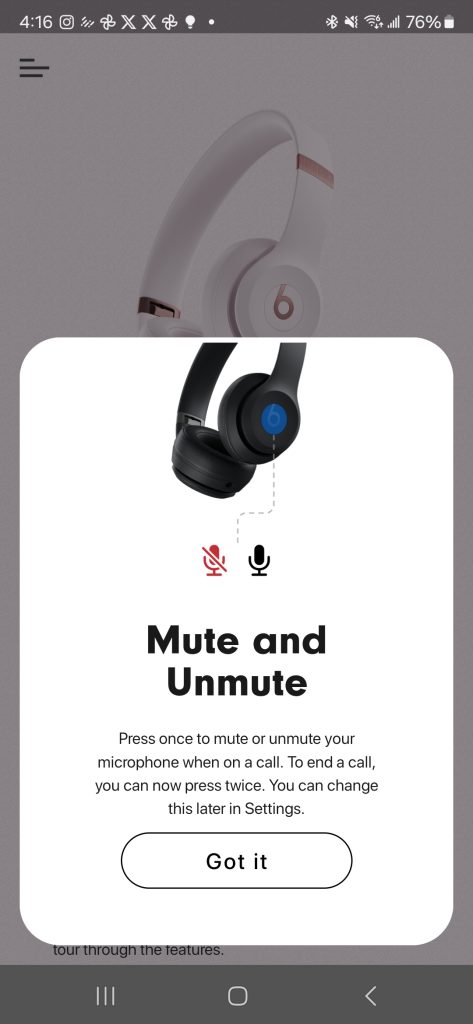 The Solo 4 headphones have Bluetooth 5.3. They worked well with Google Fast Pair when pairing with an Android device. I paired it with the Samsung Galaxy S24 Ultra, and It prompted me to open the Beats app. It also gave me a quick on-screen tutorial on how to use the Beats Solo 4.