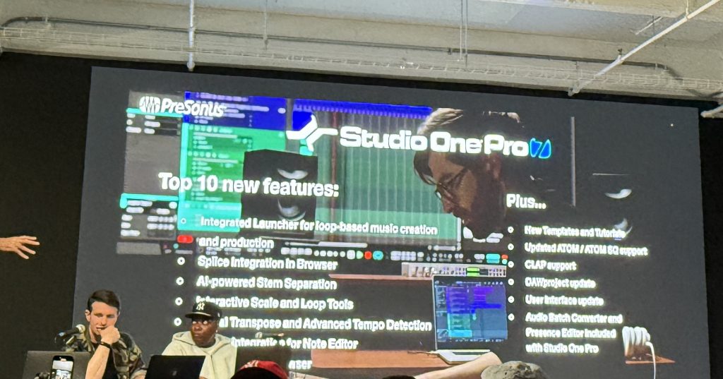 We attended the keynote of the PreSonus Studio One Pro software, where we learned how they used AI to streamline “stem separation,” which allows users to isolate elements from the audio. It was pretty amazing to witness in real-time.