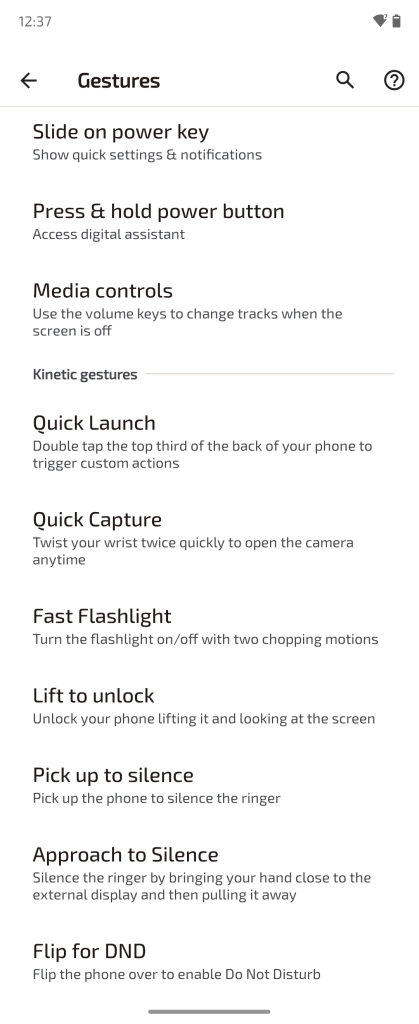 I love that Moto still uses the same gestures after all these years. Wave your hand in a chopping motion twice to turn on the flashlight. Twist your wrist like you’re opening up a door knob and it opens the camera. More gestures can be set up on the settings page.