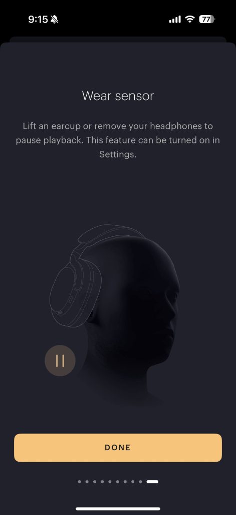 I use the Bowers & Wilkins app to adjust those settings like enabling the “wear sensor” feature. You can also use it to update firmware, adjust the equalizer, control the button settings, and finding your headphones.