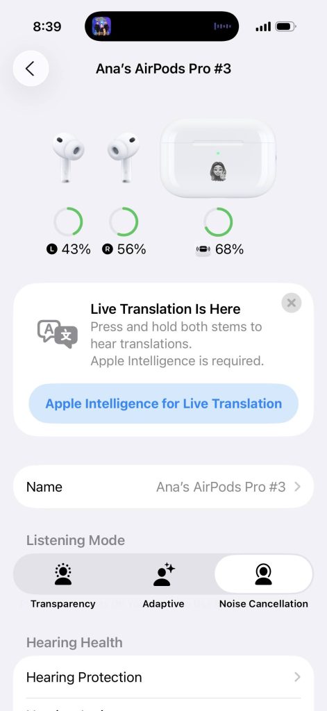 This is the headline feature. The AirPods Pro 3 now feature Heart Rate Monitoring and Body Temperature Sensing. To be fair, I prefer to use “workout headphones” at the gym and not my regular lifestyle earbuds. I know everyone doesn’t do that, though.